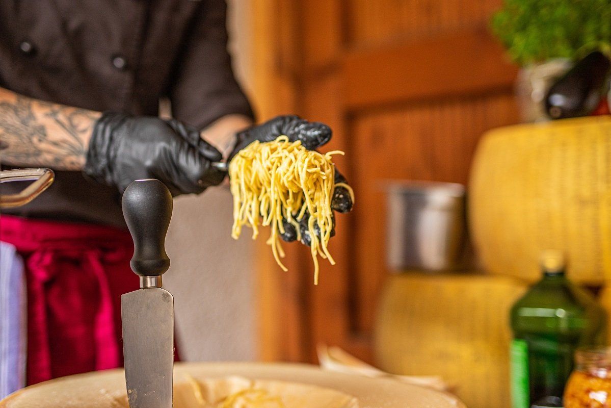 Unsere Spezialität: Pasta aus dem Parmesanlaib